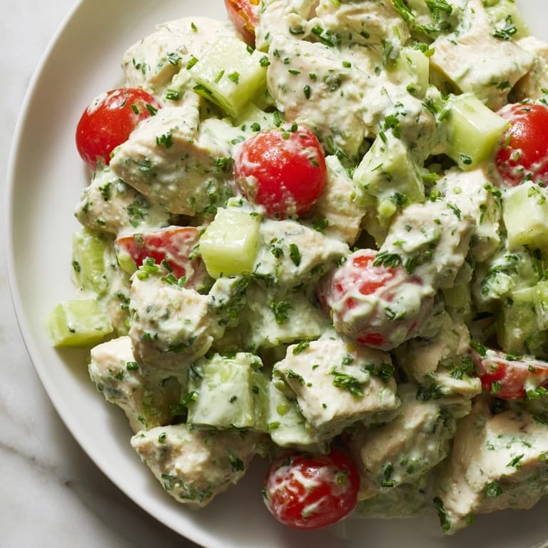 Save I was standing in my kitchen on a Tuesday afternoon, staring at leftover grilled chicken and a perfectly ripe avocado, when this salad came together almost by accident. The avocado was supposed to go into tacos, but I had already committed to something lighter. I blended it with some Greek yogurt and herbs I had wilting in the fridge, and the dressing turned out so creamy and bright that I knew I had stumbled onto something worth repeating. My partner walked in, took one bite, and asked if we could skip the tacos permanently. We didn't, but this salad definitely earned a regular spot in our meal rotation.