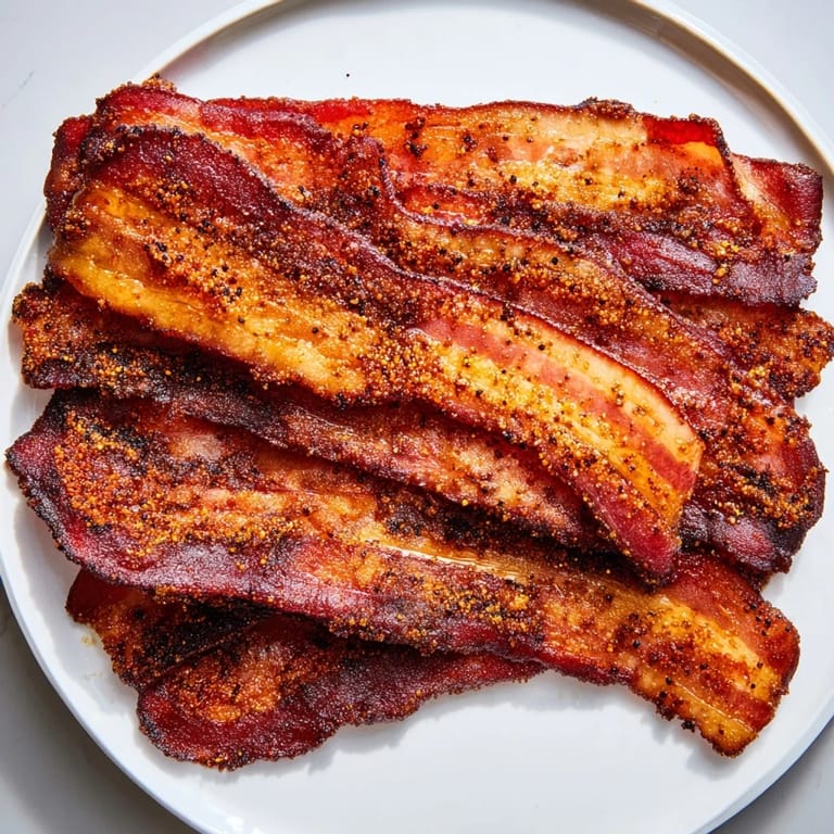 Save My kitchen got loud when a friend brought over a bottle of something expensive and said we needed to make bacon worthy of it. Not the limp, tired bacon from a skillet—something that commanded attention. I'd seen versions of this candied bacon everywhere, but the moment I pulled a batch from the oven, watching the brown sugar caramelize into this amber glaze while the edges curled with promise, I understood why people lose their minds over it. The bacon doesn't just taste better; it feels like a small act of defiance against breakfast mediocrity.