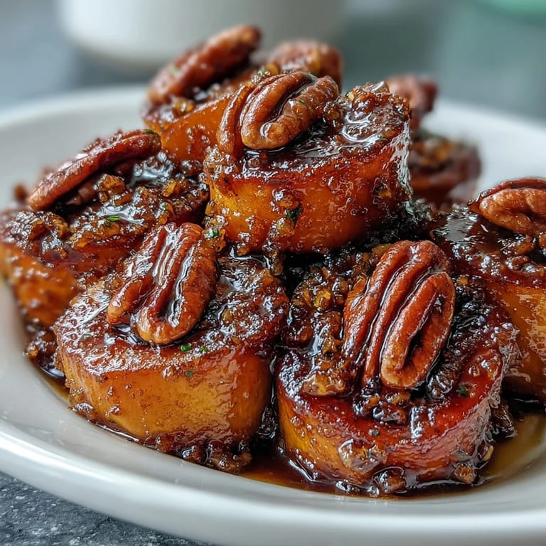 The secret to this recipe's depth of flavor lies in two small but powerful steps: toasting the pecans in a skillet before they ever meet the dish, and allowing the glaze to bubble and thicken uncovered during the final minutes of baking. Toasting wakes up the pecans' natural oils, transforming them from mild to richly nutty. Meanwhile, the uncovered baking time lets the brown sugar glaze reduce into a glossy, almost candy-like coating that clings to every round of yam. The result is a side dish that tastes as though it required far more effort than it actually did.