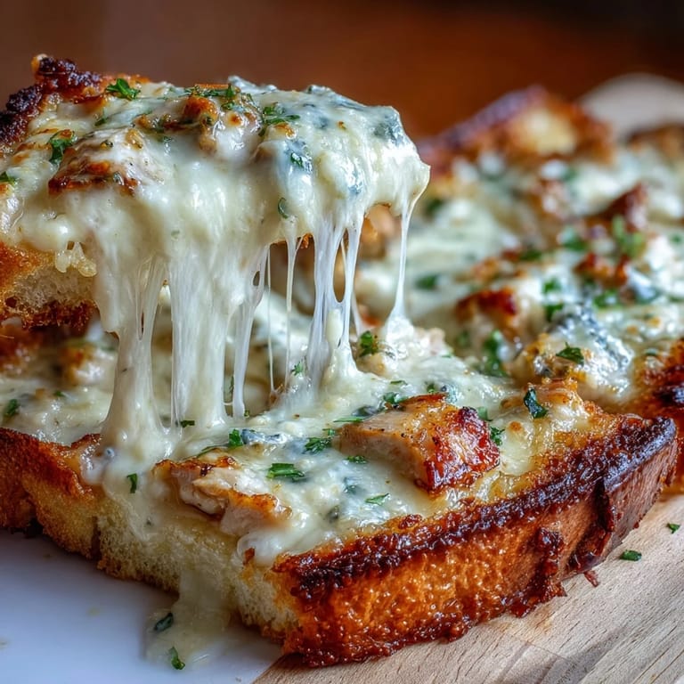 The key is toasting the bread first with garlic butter before adding toppings. This creates a crispy barrier that stands up to the creamy sauce. Also, avoid overloading with sauce and serve immediately after baking.