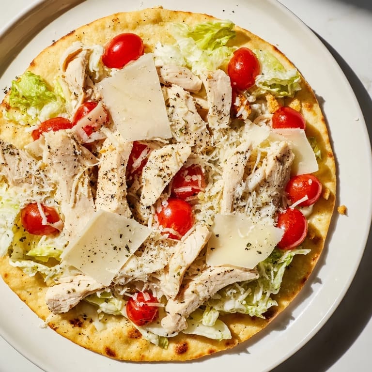 There's something about the temperature contrast that makes this flatbread memorable—warm, melted cheese and soft chicken against ice-cold, crisp romaine and cool Caesar dressing. It's also one of the rare dishes where you get both comfort and freshness on the same plate, which is probably why it went viral in the first place. The structure is simple enough that you can't overthink it, but interesting enough that it never feels boring.