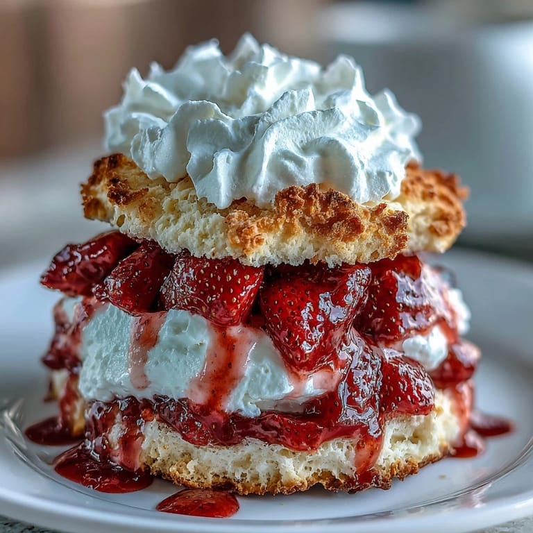 Save There's something about strawberry shortcake that makes people pause mid-conversation and actually listen when you mention you're making it. My aunt showed me her trick years ago—she'd macerate the berries while the biscuits cooled, so by the time everything came together, the juices had pooled into this sweet, jammy bottom layer that soaked right into the warm biscuit. The first time I got the timing right, watching someone's face light up when they bit through that buttery-crumbly-fruity-creamy combination felt like actual kitchen magic.