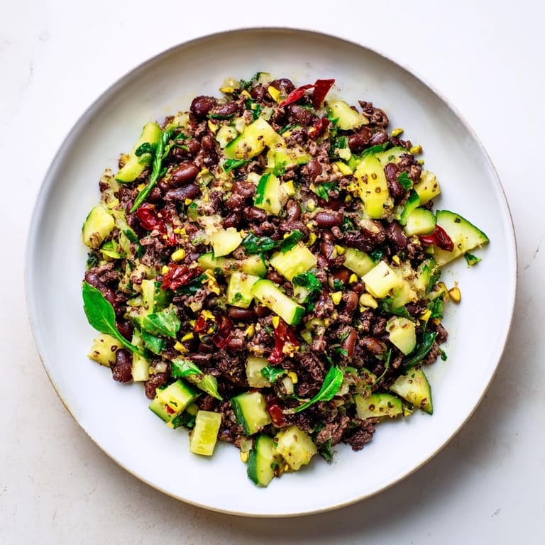Save I threw this salad together one afternoon when I had three open cans of beans in the fridge and no clear plan. My friend had just come back from Dubai raving about a chocolate bar stuffed with pistachios, and somehow that memory nudged me to toss cacao nibs into what started as a very normal bean situation. It shouldn't have worked, but the earthy bitterness played off the pomegranate molasses in a way that made me stop mid-bite and actually laugh out loud.