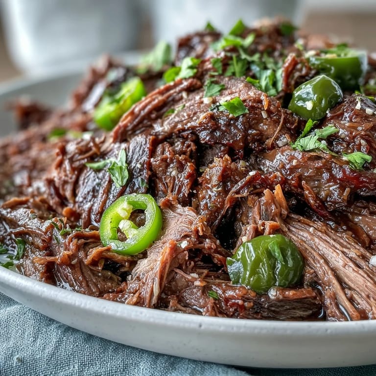 Save There's something magical about walking into a home filled with the rich, savory aroma of beef that's been slow-cooking all day. This Mississippi-Style Ranch Beef transforms an ordinary chuck roast into a tender, flavor-packed masterpiece with minimal effort. The combination of tangy pepperoncini peppers, savory ranch seasoning, and buttery au jus creates a melt-in-your-mouth experience that's become a modern classic in Southern American cooking.