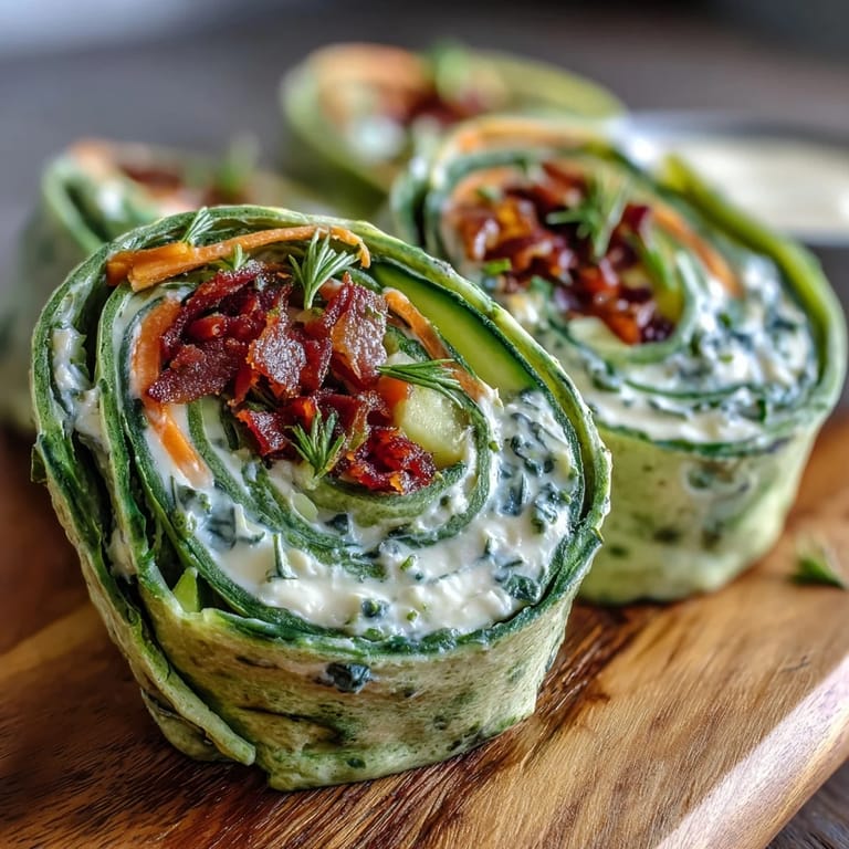 These pinwheels combine creamy herbaceous cheese with crisp, colorful vegetables wrapped in a spinach tortilla that adds a subtle earthiness and vibrant green allure. Whether for a quick snack or an elegant platter, their visual appeal and fresh flavors never fail to impress.