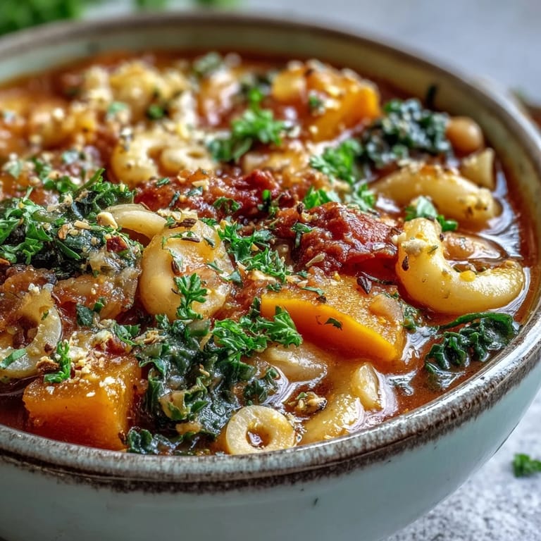 Save There's something about the smell of butternut squash softening in olive oil that makes me forget it's been a gray day outside. My neighbor knocked on my door one November afternoon with an armful of squash from her garden, and I had exactly what I needed in my pantry to turn it into something warm enough to share. This minestrone came together almost by accident, but now it's the soup I make whenever someone needs comfort more than conversation.